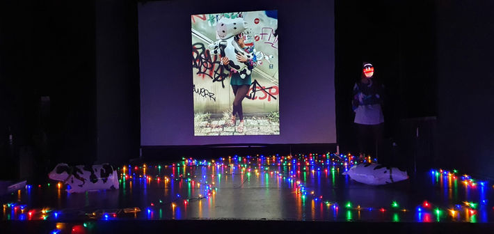 With not much time and not ideal knowledge about the city, we tried to meet a specific group of people and work on these testimonies, in order to create a work in progress: a final performance on stage. This uses videos of a person directly interviewed, photos using relevant spaces in the city previously mentioned in those talks, a re-created questionnaire to have a first job and documents, fictional and personal pictures and protected data offered by the participants in the process.
